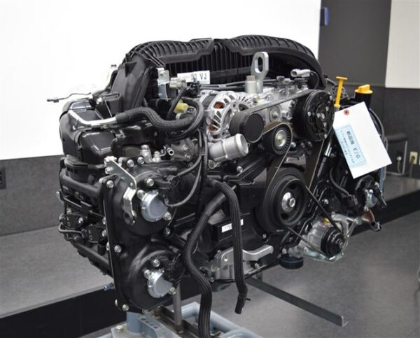 水平対向4気筒エンジン「ボクサーエンジン」の中でも最新の型式のもので、強度や出力を損なうことなく、従来のものに比べて省燃費化、コンパクト化されました。