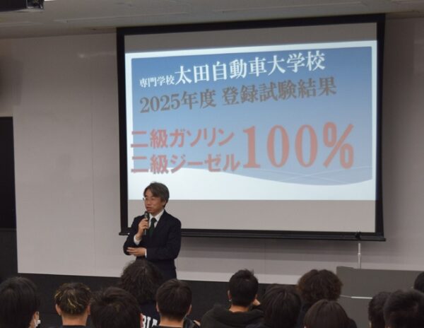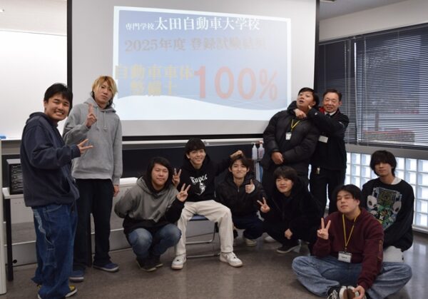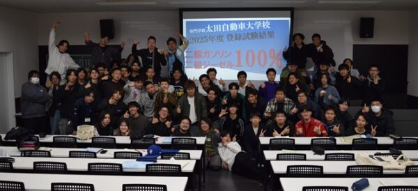 これで2025年10月に行われた二級二輪自動車整備士試験と合わせて、2025年度の自動車整備士技能登録試験の全種目(二級ガソリン、二級ジーゼル、二級二輪、車体、一級)において全員受験、全員合格を達成しました!