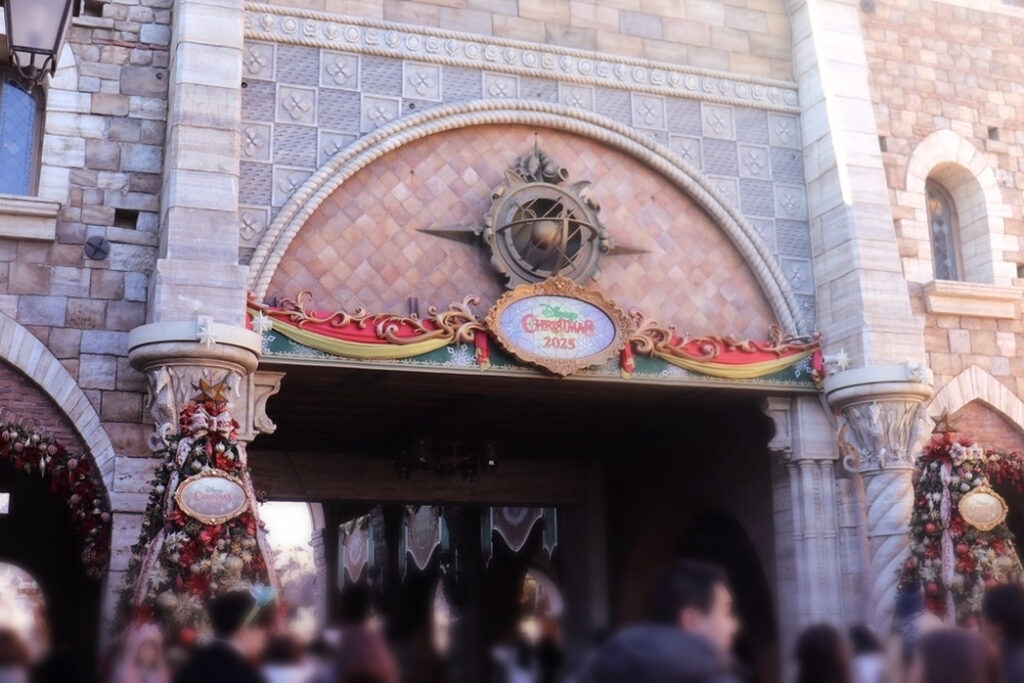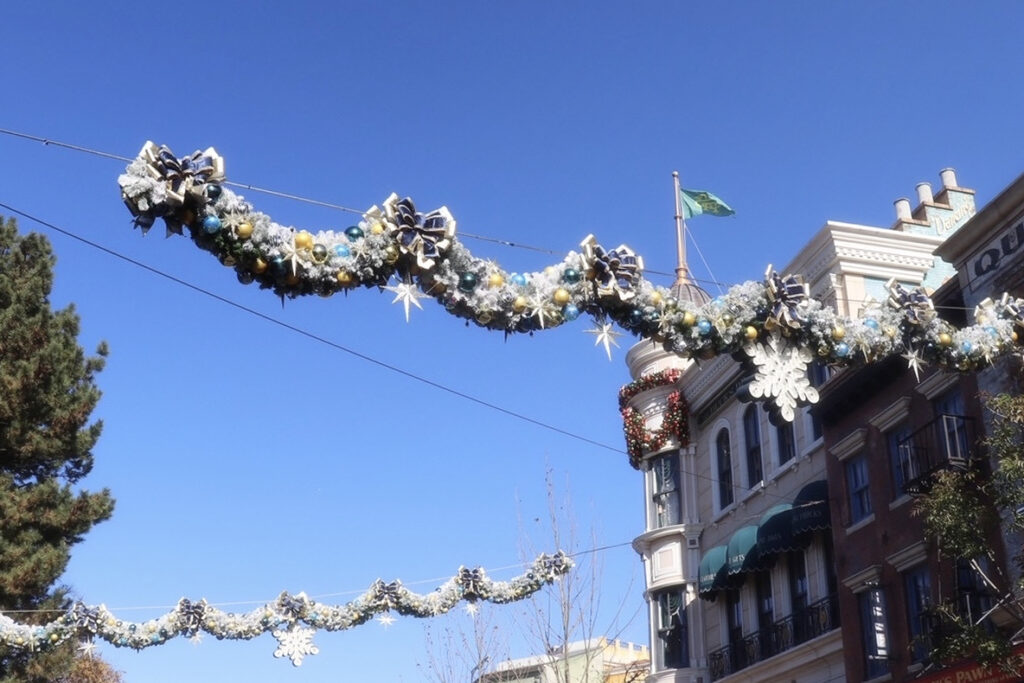 クリスマスシーズンなので、リースの装飾やクリスマスツリーなどでパーク全体が飾られており、とても華やかな雰囲気でした!