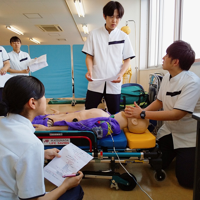 グループメンバーと連携をとりながら、人命救助につながる手技を身につけていきます。